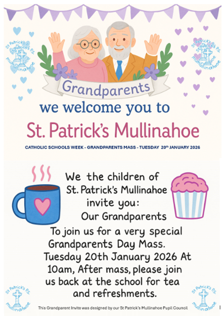 The pupils have created an Invite for Tuesdays Mass to welcome all our Grandparents.