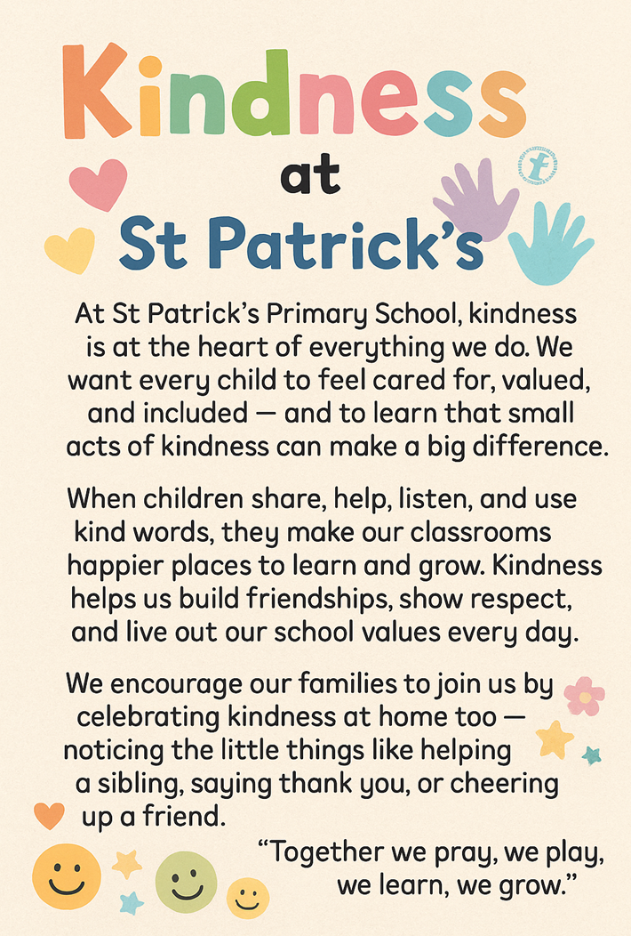 Next week, we will be celebrating Kindness Week in St. Patrick’s Primary School!